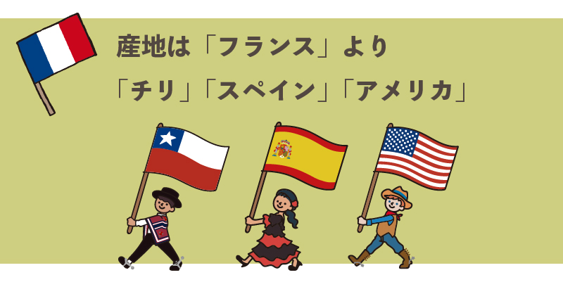 ③ 産地は「フランス」より「チリ」「スペイン」「アメリカ」